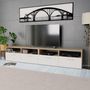 Les meubles TV modernes ont un design sobre et pratique et conviendront a n'importe quel decor de maison. Les meubles HiFi sont en bois d'ingenierie avec des bords en PVC et sont stables et durables. Chaque meuble a deux etageres ouvertes et deux armoires avec des portes s'ouvrant vers le bas qui on