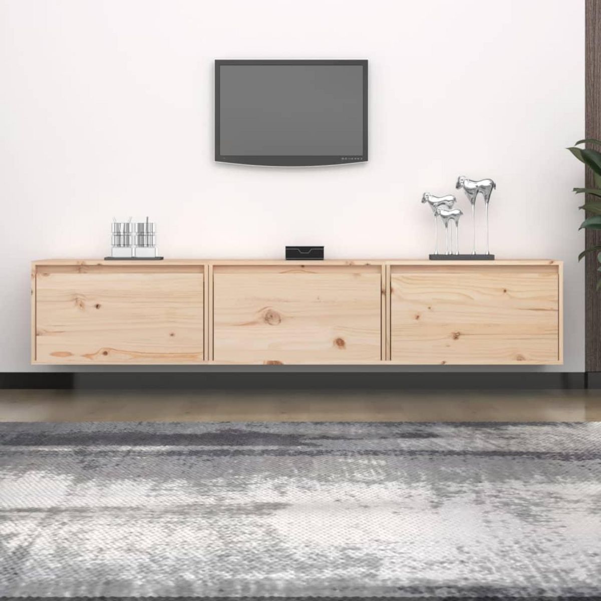 Ces armoires suspendues sont fabriquees en bois de pin massif, ce qui garantit leur solidite, durabilite et longevite. Les unites murales sont l'endroit ideal pour ranger des objets tels que des livres, des objets de collection, des bibelots, etc. Elles transforment un mur vide en une caracteristique de conception. De plus, les armoires flottantes sont faciles a nettoyer avec un chiffon humide.