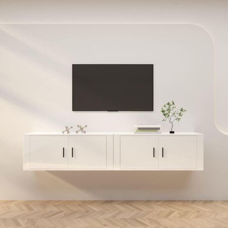 Meubles TV muraux 2 pcs blanc brillant 100x34,5x40 cm