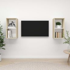 Meubles TV muraux 2 pcs Blanc et chene sonoma Bois d'ingenierie