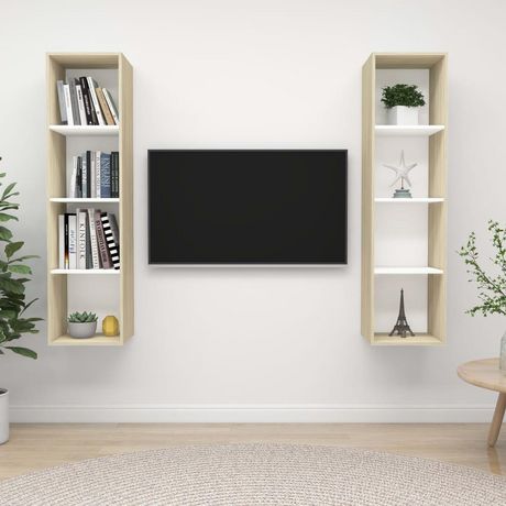 Meubles TV muraux 2 pcs Blanc et chene sonoma Bois d'ingenierie