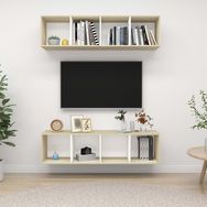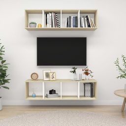 Meubles TV muraux 2 pcs Blanc et chene sonoma Bois d'ingenierie