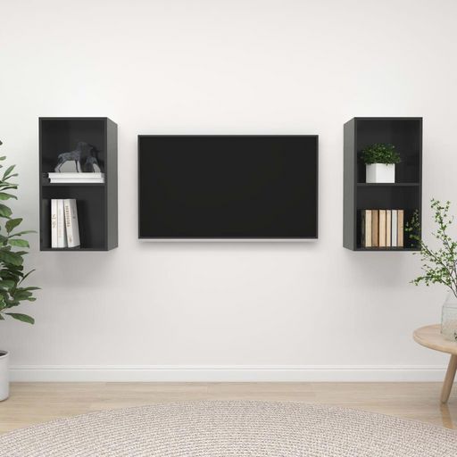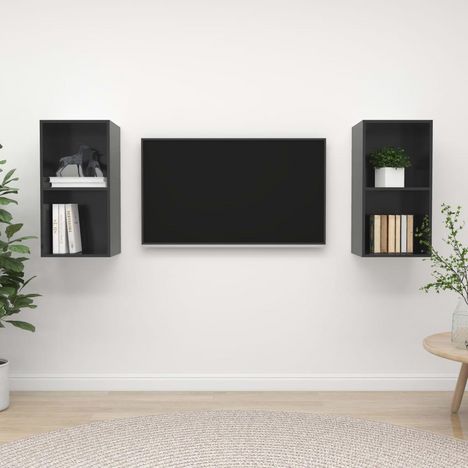 Meubles TV muraux 2 pcs Gris brillant Bois d'ingenierie