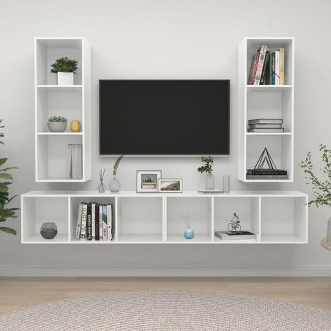 Meubles TV muraux 4 pcs Blanc brillant Bois d'ingenierie