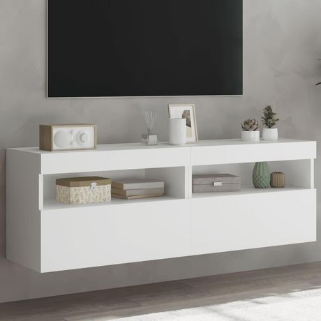 Meubles TV muraux avec lumieres LED 2 pcs blanc 60x30x40 cm