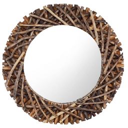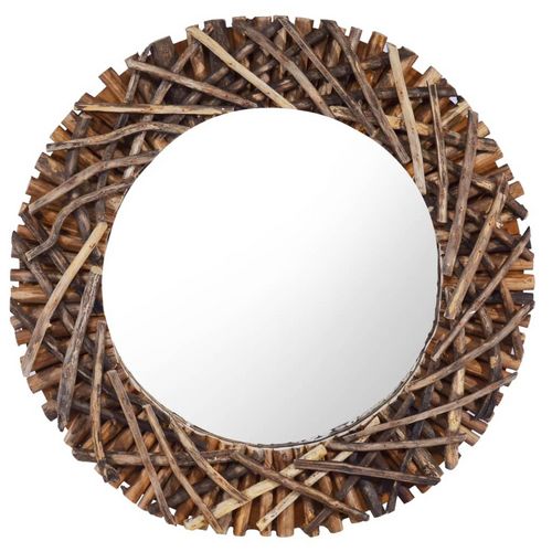 Le cadre du miroir est tisse a la main de branches de teck naturel, ce qui ajoute au style rustique du miroir. Il sera parfait dans n'importe quelle piece de la maison et peut egalement etre utilise dans la salle de bain. Le miroir est pret a etre monte au mur grace au crochet deja installe sur la planche dorsale.