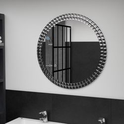 Le miroir est dote d'un magnifique bord en cristal acrylique, qui ajoute de l'elegance au miroir et en fait le point central de votre salon. De conception contemporaine, notre miroir de salle de bains est en verre trempe, ce qui lui assure une grande durabilite.