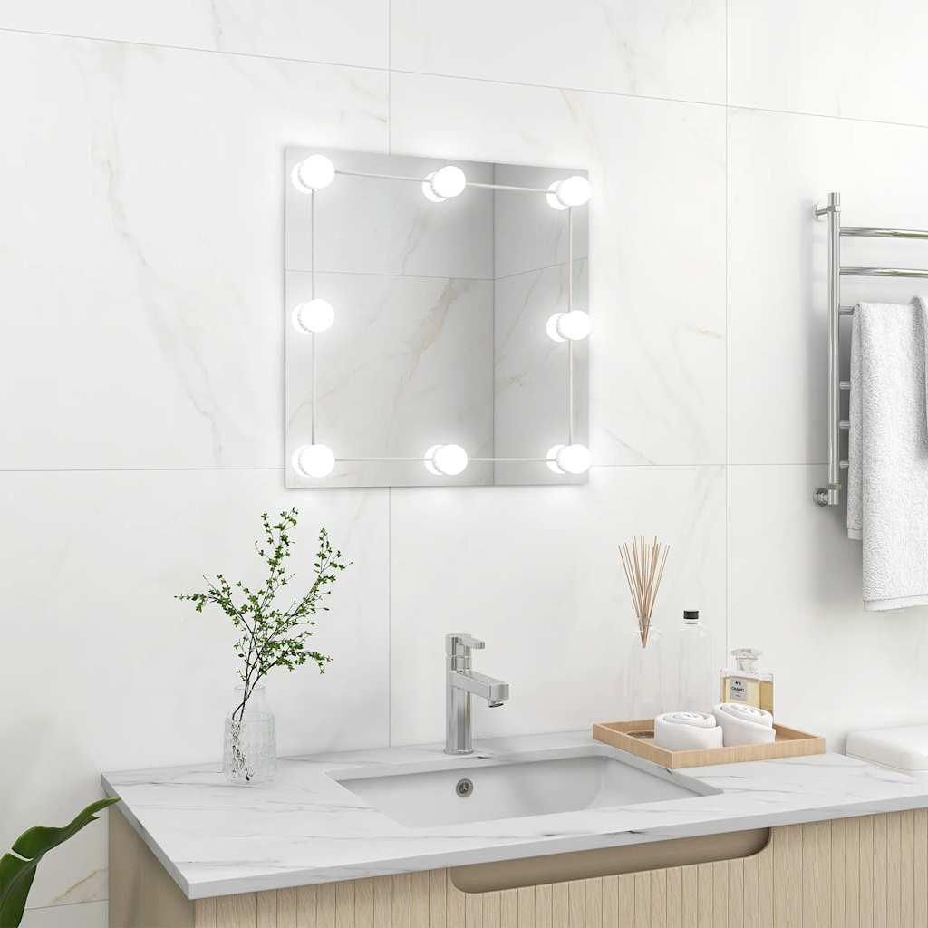 Ajoutez une touche de style contemporain a votre chambre a coucher, salon ou dressing avec ce miroir mural pratique avec lampes LED ! Le bord du miroir est moulu pour lui donner un aspect propre. Vous pouvez egalement acheter plusieurs miroirs et les disposer dans un motif decoratif. La lampe de mir