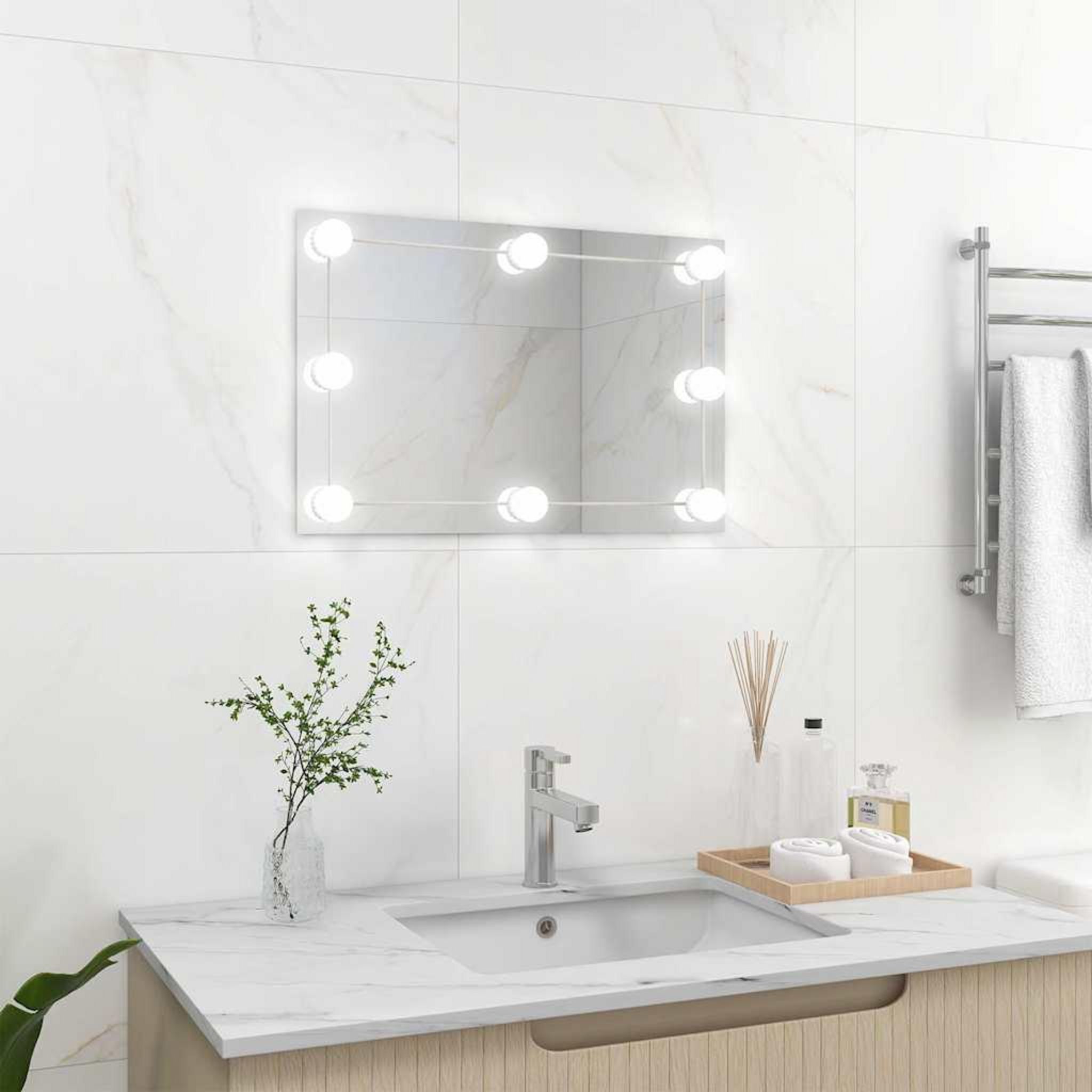 Ajoutez une touche de style contemporain a votre chambre a coucher, salon ou dressing avec ce miroir mural pratique avec lampes LED ! Le bord du miroir est moulu pour lui donner un aspect propre. Vous pouvez egalement acheter plusieurs miroirs et les disposer dans un motif decoratif. La lampe de mir