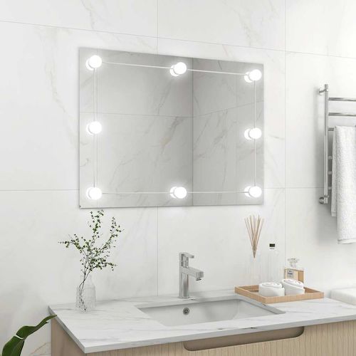 Ajoutez une touche de style contemporain a votre chambre a coucher, salon ou dressing avec ce miroir mural pratique avec lampes LED ! Le bord du miroir est moulu pour lui donner un aspect propre. Vous pouvez egalement acheter plusieurs miroirs et les disposer dans un motif decoratif. La lampe de mir
