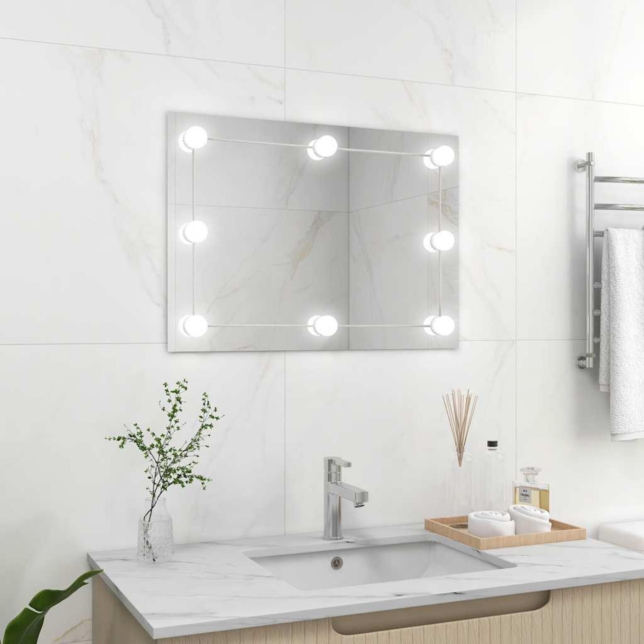 Ajoutez une touche de style contemporain a votre chambre a coucher, salon ou dressing avec ce miroir mural pratique avec lampes LED ! Le bord du miroir est moulu pour lui donner un aspect propre. Vous pouvez egalement acheter plusieurs miroirs et les disposer dans un motif decoratif. La lampe de mir