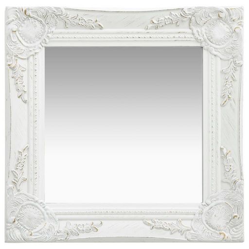 Ce miroir mural magnifique avec son cadre ornemente cree une atmosphere baroque dans votre dressing. Ce miroir a l'aspect ancien presente un cadre en bois robuste qui est habilement travaille pour arborer des motifs baroques. De plus, le bord conique donne au miroir un aspect unique. Le miroir peut