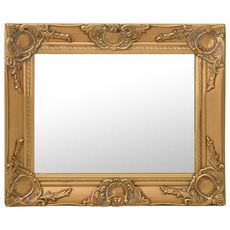 Ce miroir mural magnifique avec son cadre ornemente cree une atmosphere baroque dans votre dressing. Ce miroir a l'aspect ancien presente un cadre en bois robuste qui est habilement travaille pour arborer des motifs baroques. De plus, le bord conique donne au miroir un aspect unique. Le miroir peut