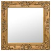 Ce miroir mural magnifique avec son cadre ornemente cree une atmosphere baroque dans votre dressing. Ce miroir a l'aspect ancien presente un cadre en bois robuste qui est habilement travaille pour arborer des motifs baroques. De plus, le bord conique donne au miroir un aspect unique. Le miroir peut