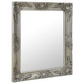 Ce miroir mural magnifique avec son cadre ornemente cree une atmosphere baroque dans votre dressing. Ce miroir a l'aspect ancien presente un cadre en bois robuste qui est habilement travaille pour arborer des motifs baroques. De plus, le bord conique donne au miroir un aspect unique. Le miroir peut