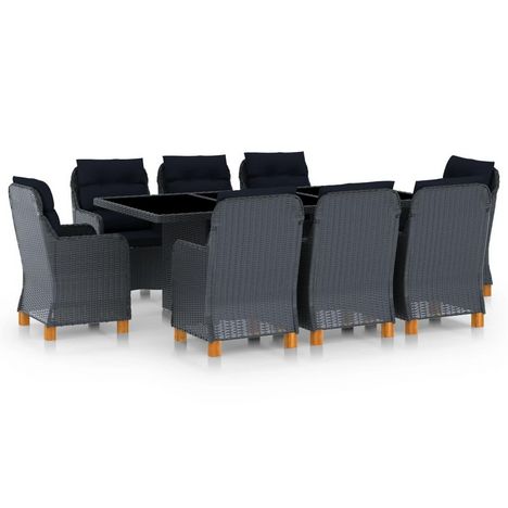 Mobilier a dîner 9 pcs avec coussins Resine tressee Gris fonce