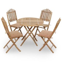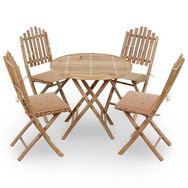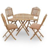 Mobilier a dîner d'exterieur pliable 5 pcs avec coussins bambou