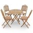 Fabrique en bambou massif, l'ensemble de salle a manger de jardin est resistant et durable. Il est egalement resistant aux intemperies et impermeable, et facile a nettoyer avec un chiffon humide. La table et les chaises sont toutes pliables pour economiser de l'espace de stockage lorsqu'elles ne sont pas utilisees. De plus, les coussins fournis offrent du confort supplementaire lors de la detente. Il est compose a 100 % de polyester qui a ete traite pour le rendre resistant a l'eau. Chaque coussin a deux jeux de cordes pour le fixer fermement sur la chaise de salle a manger.