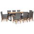 Mobilier d'exterieur 9 pcs resine tressee et bois d'acacia gris