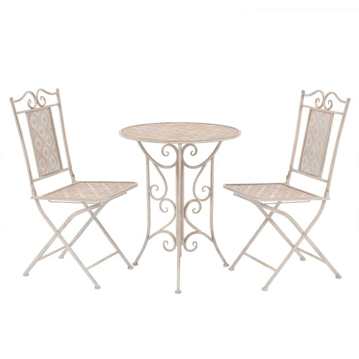 Cet ensemble de bistro vintage ajoutera une touche altique a tout dîner. Notre ensemble de balcon en acier deviendra le point central de votre jardin, balcon ou patio. L'ensemble de bistro est en acier enduit de poudre, resistant aux intemperies et tres durable. Les decorations de luxe peintes a la