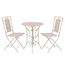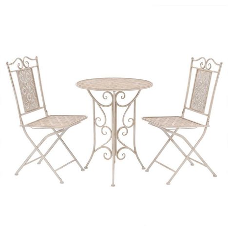 L'ensemble de bistro est en acier enduit de poudre, resistant aux intemperies et tres durable. Les decorations de luxe peintes a la main et la finition rouillee feront la salle a manger se demarquer dans n'importe quel jardin ou sur n'importe quel patio ou balcon. Le mobilier de jardin altique est tres facile a nettoyer avec un chiffon humide. Les chaises peuvent etre facilement pliees pour economiser de l'espace lorsqu'elles ne sont pas utilisees.
