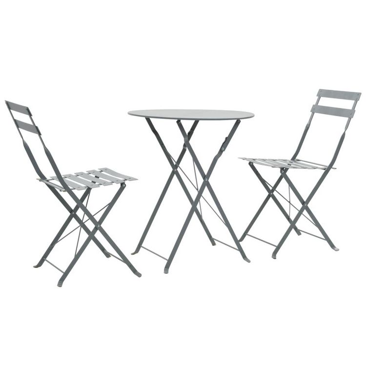 L'ensemble de bistro pliable de 3 pieces deviendra le point central de votre jardin, terrasse et balcon, ainsi que le choix ideal pour un dîner intime en plein air. L'ensemble est fabrique en acier enduit de poudre, ce qui le rend stable, resistant aux intemperies et extremement durable. Toutes les