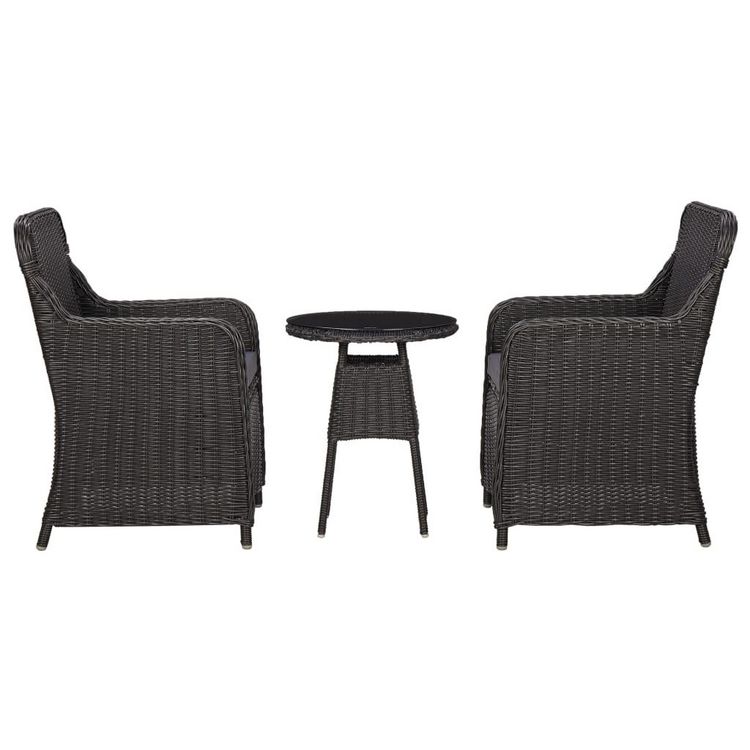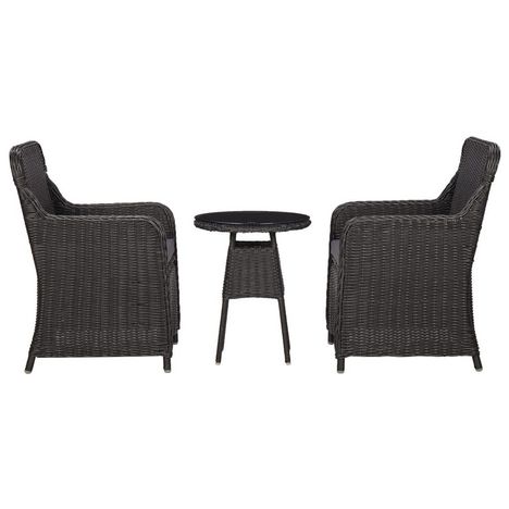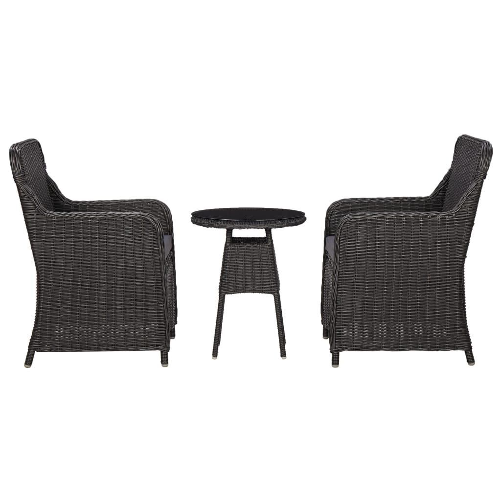 Mobilier de bistro 3 pcs avec coussins Resine tressee Noir