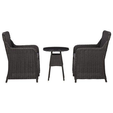 Dote d'un cadre en acier robuste enveloppe de resine tressee tissee a la main resistante aux intemperies, cet ensemble est resistant a la rouille et a la moisissure, ce qui peut fournir des annees de detente de qualite. Il est egalement livre avec des coussins de siege tres confortables et epaississement rembourres pour un confort ultime. Equipees de fermetures a glissiere, les housses en polyester a faible entretien peuvent etre retirees et lavees. De plus, le dessus de table en verre noir est facile a nettoyer avec un chiffon humide. La livraison comprend 2 chaises, 1 table a the et 2 coussins de siege.