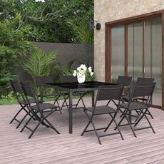 Mobilier de salle a manger d'exterieur 9 pc Acier