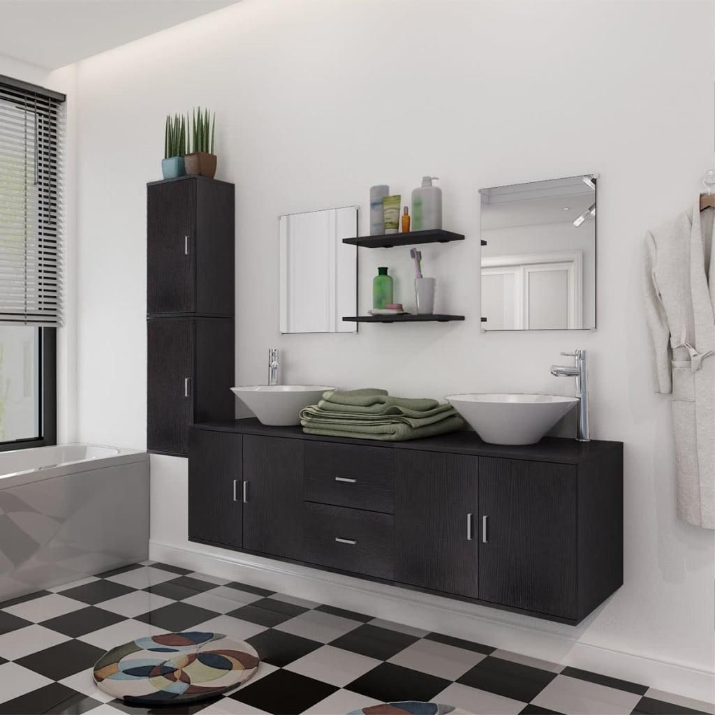 Mobilier de salle de bain avec lavabo 9 pcs Noir