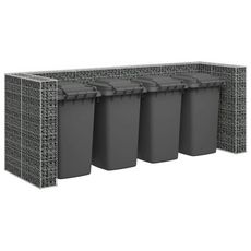 Le gabion robuste a ete conçu pour etre rempli de roches ou de gravier. Fabrique en acier galvanise antirouille et resistant aux intemperies, le panier de pierres est tres stable et durable. La grille est soudee avec des fils transversaux et longitudinaux a chaque intersection pour une stabilite accrue. Notre mur de gabion peut contenir 4 poubelles. De plus, il est facile a assembler.