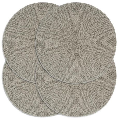 Napperons 4 pcs Gris Plain 38 cm Rond Coton