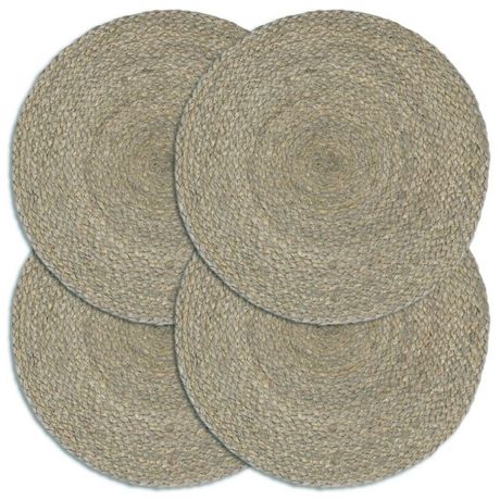Nos napperons tisses a la main ajouteront un element unique a votre cuisine. Le jute est un materiau naturellement resistant, doux au toucher, durable et necessitant peu d'entretien. Faite a la main, chaque piece est unique ! La livraison comprend 4 napperons. Veuillez noter que des legeres variatio