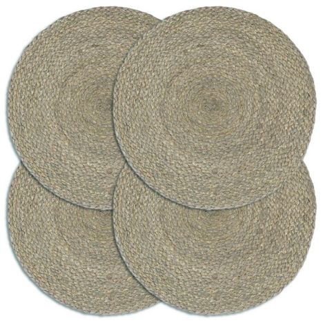Napperons 4 pcs Gris Plain 38 cm Rond Jute