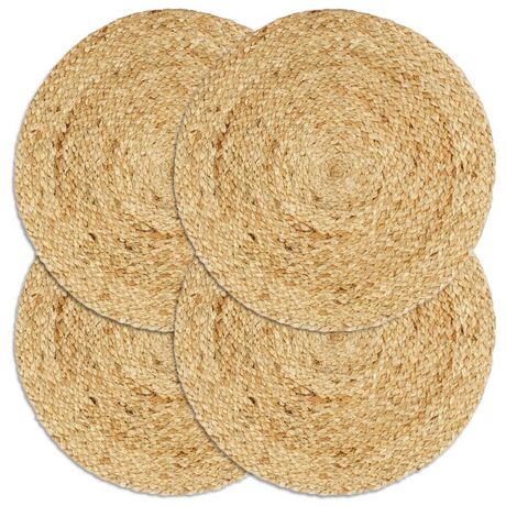 Nos napperons tisses a la main ajouteront un element unique a votre cuisine. Le jute est un materiau naturellement resistant, doux au toucher, durable et necessitant peu d'entretien. Faite a la main, chaque piece est unique ! La livraison comprend 4 napperons. Veuillez noter que des legeres variatio