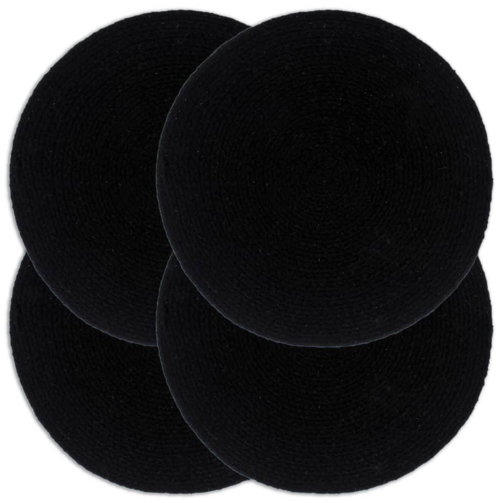 Napperons 4 pcs Noir Plain 38 cm Rond Coton