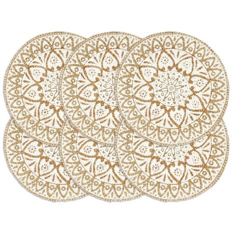 Napperons 6 pcs Blanc 38 cm Rond Jute