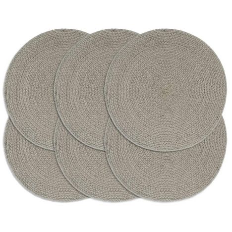 Napperons 6 pcs Gris Plain 38 cm Rond Coton