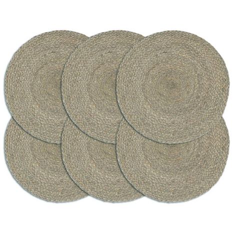 Napperons 6 pcs Gris Plain 38 cm Rond Jute