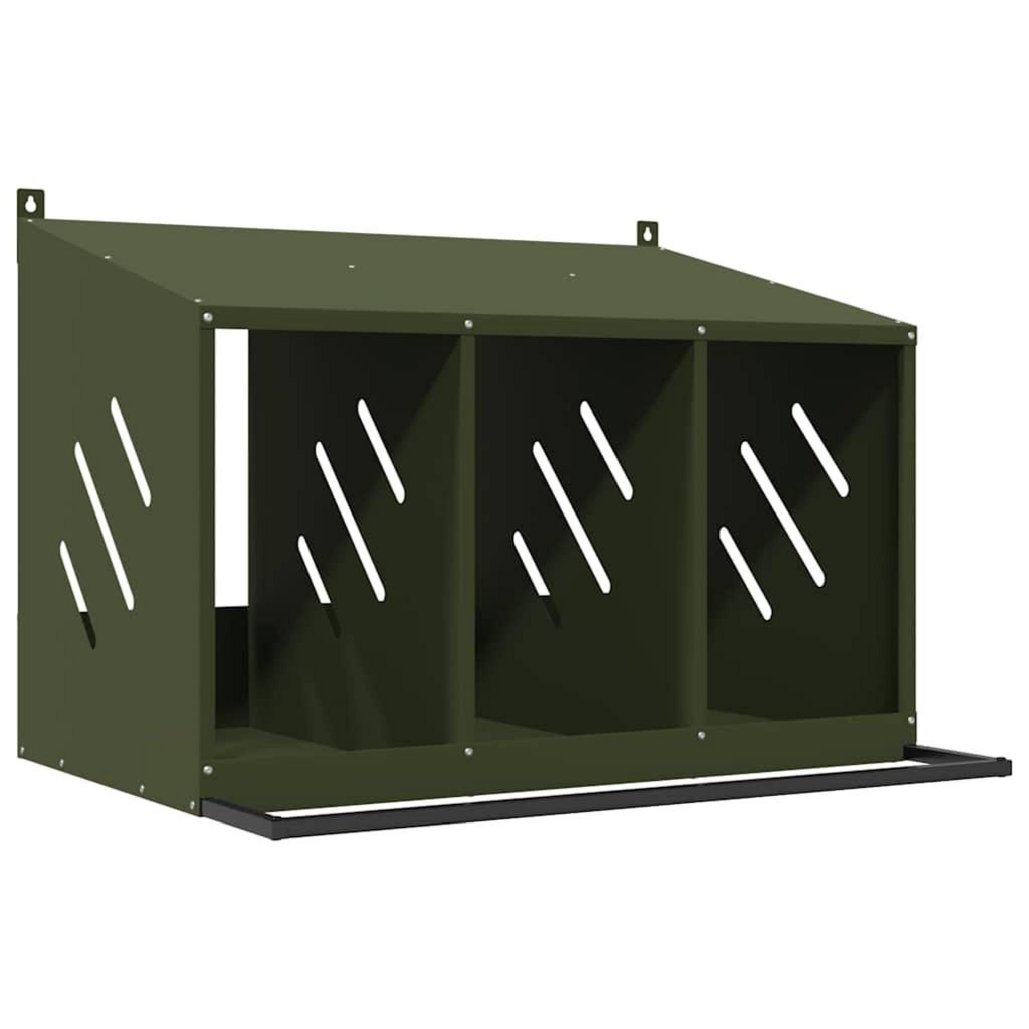 Nichoir a poules avec 3 compartiments vert olive metal