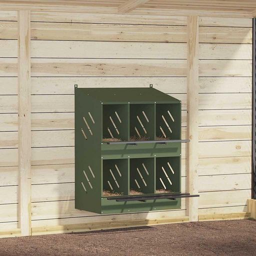 Ce pondoir a poules offre un espace ample et organise pour que vos poules puissent pondre confortablement leurs œufs. Robuste et durable : la boîte a œufs est fabriquee a partir de toles laminees a froid et de toles galvanisees, qui sont durables, robustes et resistantes aux intemperies. Elle garde