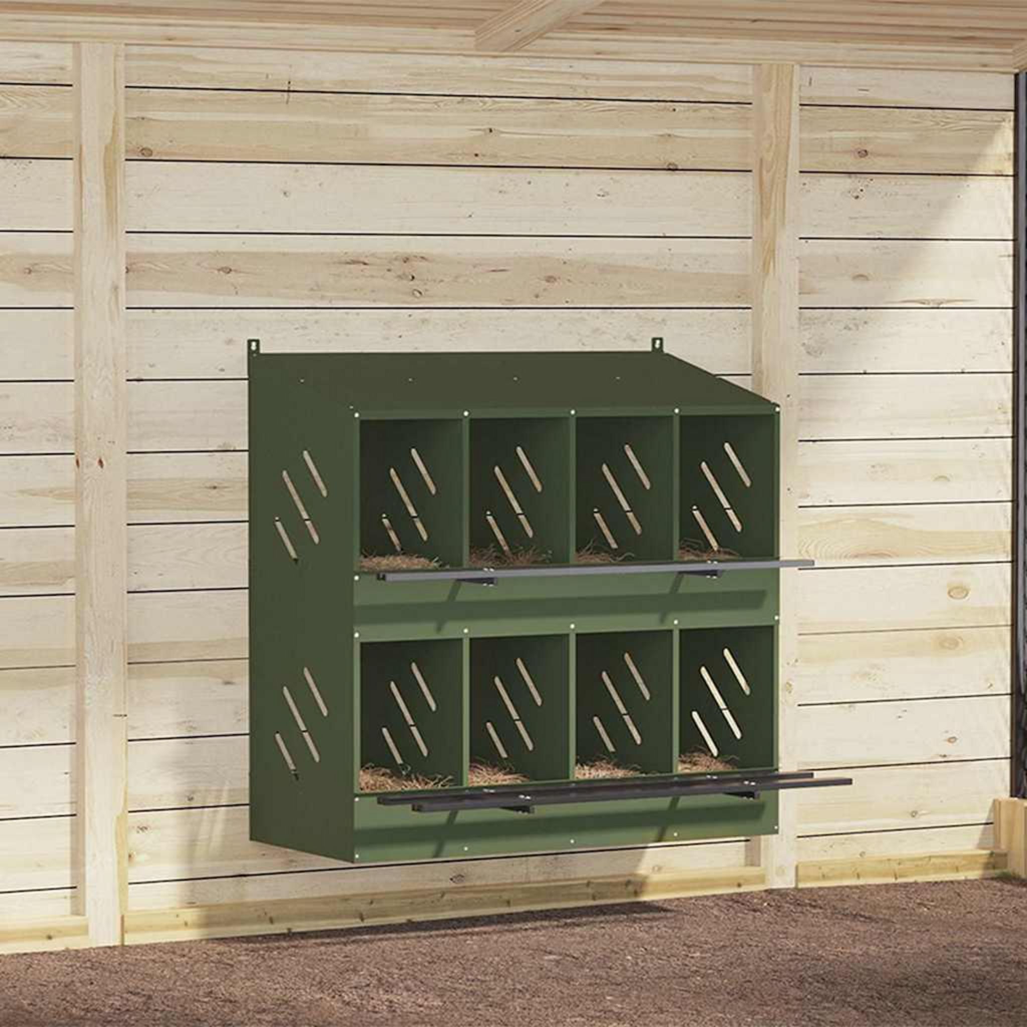 Ce pondoir a poules offre un espace ample et organise pour que vos poules puissent pondre confortablement leurs œufs. Robuste et durable : la boîte a œufs est fabriquee a partir de toles laminees a froid et de toles galvanisees, qui sont durables, robustes et resistantes aux intemperies. Elle garde
