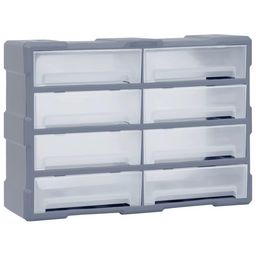 Ce meuble de rangement contient 8 grands tiroirs pour offrir plus d'espace de rangement. Il garde vos outils a main et accessoires comme les fixations organises et a portee de main. L'armoire a outils est fabriquee en plastique resistant aux chocs, qui est a la fois durable et stable. Les tiroirs sont en plastique transparent afin que vous puissiez identifier rapidement le contenu. Cette boîte de bricolage est ideale pour ranger les ecrous, les boulons, les vis, les clous, les fixations generales et les composants.