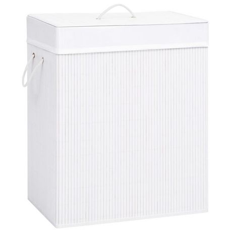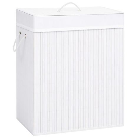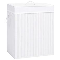 Panier a linge avec 2 sections bambou blanc 100 L