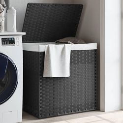 Panier a linge avec 2 sections gris 53x35x57 cm resine tressee