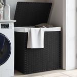 Panier a linge avec 2 sections noir 53x35x57 cm resine tressee