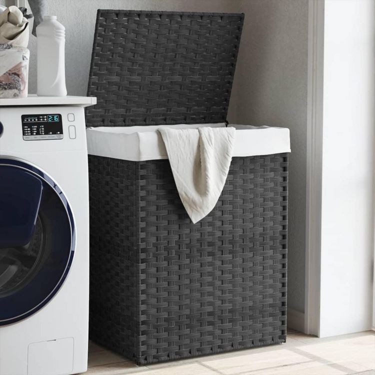 Panier a linge avec couvercle gris 46x33x60 cm resine tressee