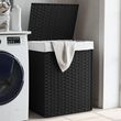 Panier a linge avec couvercle noir 46x33x60 cm resine tressee
