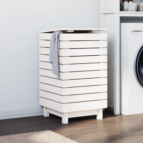 Panier a linge blanc 44x44x76 cm bois massif de pin