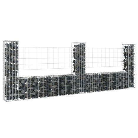 Panier de gabion en forme de U avec 3 poteaux Fer 260x20x100 cm